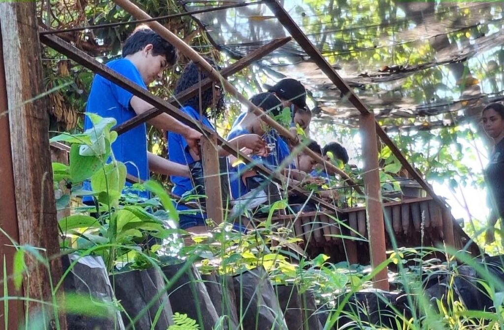 De forma didática, foram apresentados os cuidados necessários desde a germinação até o desenvolvimento das mudas, com destaque para os ipês, espécie escolhida para o projeto por sua adaptação ao clima local e relevância paisagística.