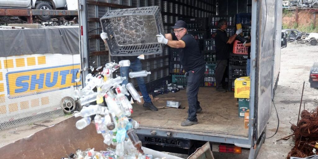 O material, cerca de 7 toneladas de vidro, foi encaminhado para uma empresa especializada em reciclagem após autorização judicial.