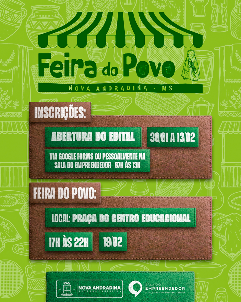 Após o sucesso da primeira edição da Feira do Povo, realizada em dezembro do ano passado, a Prefeitura de Nova Andradina, por meio da Secretaria Municipal de Meio Ambiente e Desenvolvimento Integrado (Semadi), confirma a continuidade do projeto ao longo de 2026. A iniciativa tem como objetivo fortalecer o empreendedorismo local, valorizar a produção artesanal, agrícola e comercial, além de estimular a economia criativa do município.