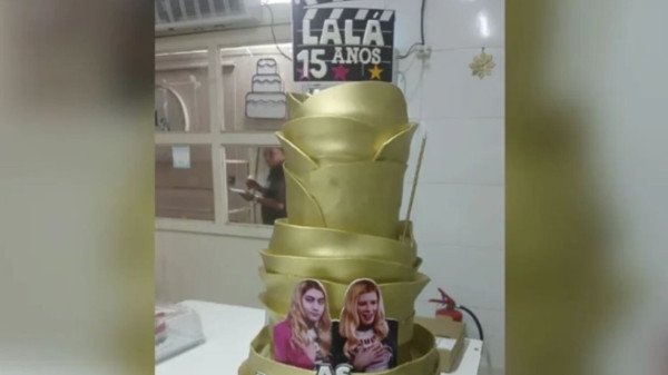 Em imagem divulgada, o bolo, criado pela confeitaria Maria Amélia Doces, exibia decoração dourada com o tema do filme americano “As Branquelas” e o nome “Lala 15 anos”. Laura é filha da ex-primeira-dama Michelle Bolsonaro.