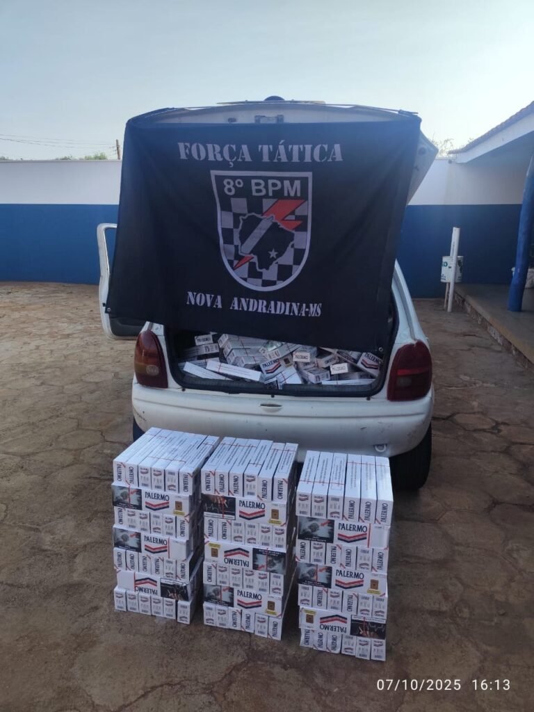 O suspeito inicialmente negou ser proprietário do veículo, mas, após a verificação, confirmou a posse da carga. No interior do automóvel, foram encontradas 11 caixas contendo cigarros contrabandeados.