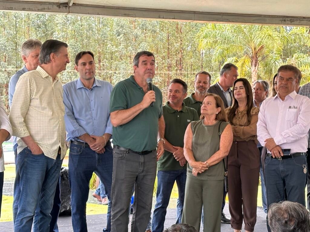 Durante sua fala, Riedel agradeceu a presença dos deputados estaduais Pedro Caravina e Mara Caseiro, do deputado federal Dagoberto Nogueira e do senador da República Nelson Trad Filho.