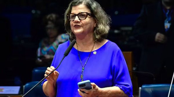 A senadora Teresa Leitão (PT-PE) tropeçou e caiu no plenário do Senado, sofrendo um corte na testa. A sessão foi suspensa e ela passa bem.